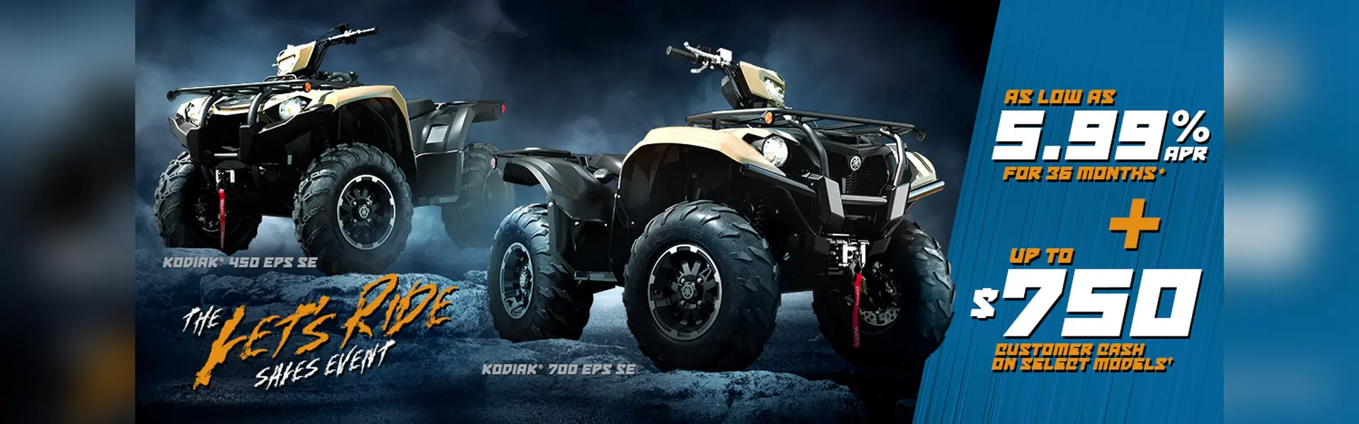 Offer in lieu of rebate and only available on select 2025 ATV Models purchased between 10/1/2025 - 10/31/2025. Youth Models excluded. *Example: On a purchase where the Amount Financed is $7,500.00, your Down Payment is $0.00 with 36 monthly payments of $214.79 each. Interest rate is 1.99% [ANNUAL PERCENTAGE RATE is 1.99% (E)].