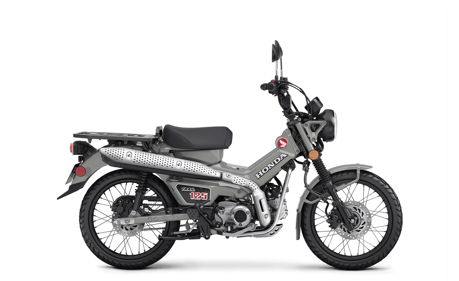 Inspired by the iconic Trail 90 and Trail 110, the Trail125 combines retro charm with modern tech, now in Glowing Red and Pearl Smoky Gray. Our rugged 125cc fuel-injected engine, front-wheel ABS, and versatile rear cargo rack deliver easy handling and endless fun, making it the perfect two-wheeled miniMOTO fun machine.