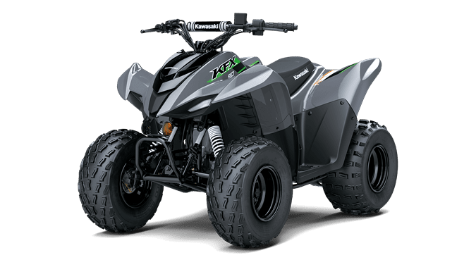Four-wheel fun starts with KFX®. Get the kids outdoors and ready to ride on the KFX®90 ATV line with proportionate power and size for riders ages 10 and older. KFX90 ATVs let kids take on more challenging tracks and bigger adventures with an 89.9cc engine and sporty suspension.